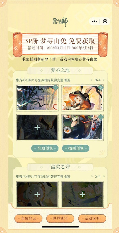 活动期间,大人前往[兔兔忍法帖]小程序进行游戏账号绑定,集齐插画碎片完成拼图,即可解锁对应插画获取「胡箩卜糖」