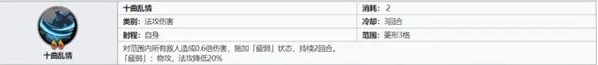 专属技能【十曲乱情】:对范围内所有敌人造成0.6倍伤害,施加「疲弱」状态,持续2回合。