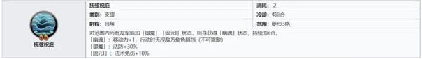 buff技【天霜雪舞】:对范围内所有友军施加「御魔」「固元I」状态,自身获得「幽魂」状态,持续3回合。