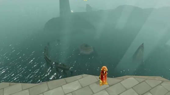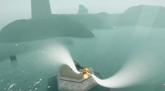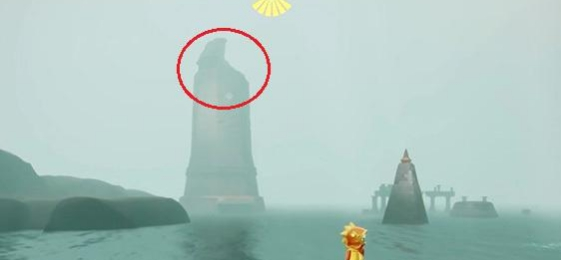 1、拿完第一个小金人之后往下看,在海上有一个洞;