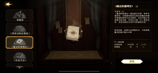 2、获得40点课堂积分,可获得黑魔法防御术相关卡牌