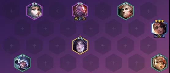 无双剑姬 菲奥娜(4)、亡灵战神 赛恩(4)、诺克萨斯统领 斯维因(2)、沙漠玫瑰 莎弥拉(3)【阵容主C】、虚空之女 卡莎(5)、刀锋之影 泰隆(2)、德玛西亚之翼 奎因(2)