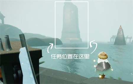 3、站在船上查看任务的目标,站在船上确定高塔的位置;