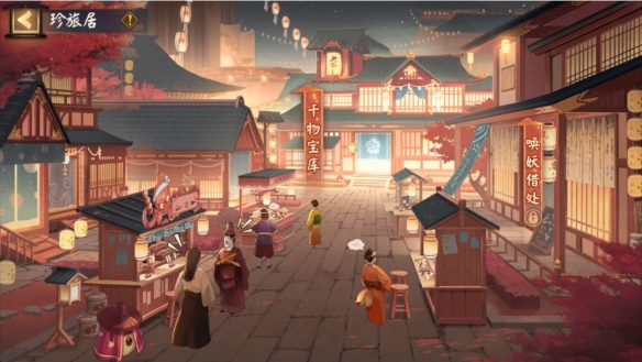 聚集了各类阴阳师的热闹居所,珍旅居开放了'唤妖借处'、'千物宝库'为大人们提供服务。