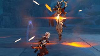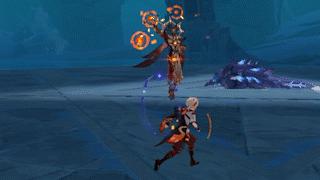 技能描述:深渊咏者·渊火召唤出五颗小火球投向旅行者