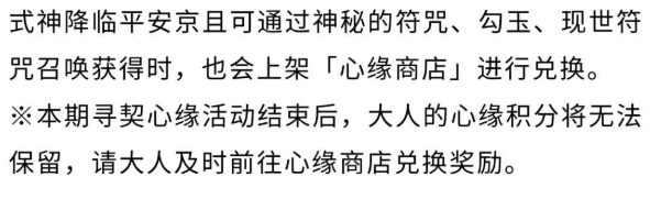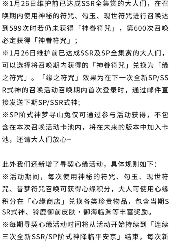 3)SSR和SP全图鉴的玩家直接可以将神眷符咒升级为缘之符咒,所以下一期的新式神直接获得
