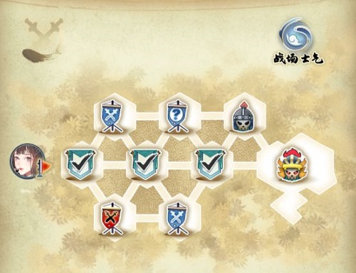 2、战场上共九步棋格(每次行动消耗一点体力,前进无法返回),事件主要包括战斗事件、随机事件、奖励事件。