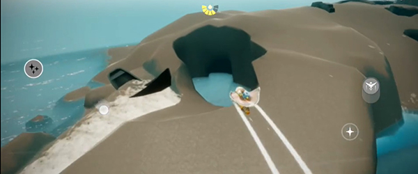 4、然后从往上出洞口,在刚才进入洞口的位置往左上方飞,可以在海边看到一个洞,如图所示: