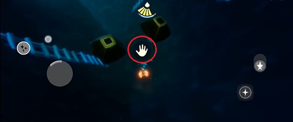 3、一直往下潜入,可以看到一个晶石,有一个手掌的标识,点击手掌即可;