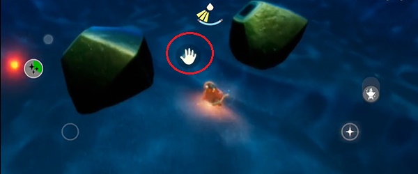 5、然后潜入水中,一直往下同样的可以看到一个手掌的图标,点击;