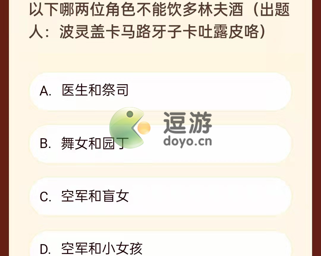 2.问题:以下哪两位角色不能饮多林夫酒?