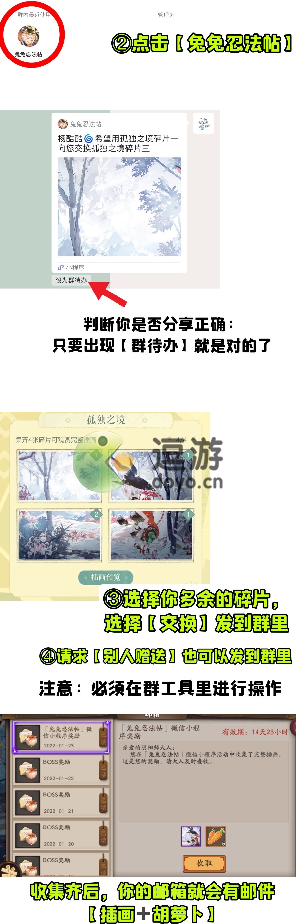 街机cn 来源:厂商 发表于:2022-01-24阴阳师兔兔忍法帖孤独之境怎么完成?孤独之境是兔兔忍法帖第三阶段的任务,这里再次提醒一下,仅供参考,麻烦的话可以选择等着26号发胡萝卜哦~