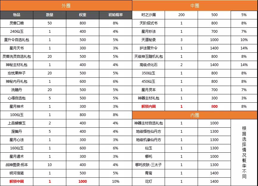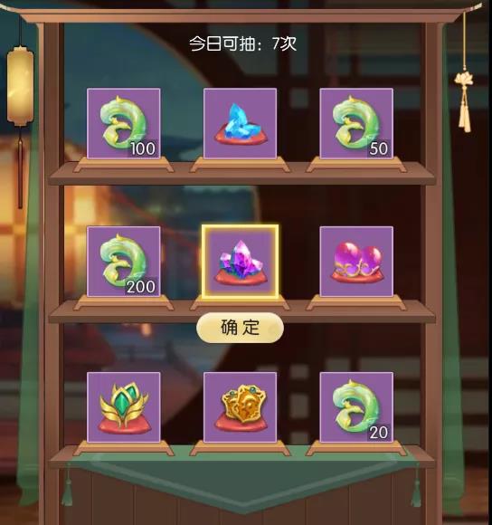天帝宝库新年再次开启,天帝宝库共分为三层,其中最内层奖励可从预定的八个奖励中挑选4个放入宝库中!每次寻宝消耗一定数量的天帝密钥,从外层到内层的需求数量分别为1、4、21。每次寻宝必得一种奖励,已抽中的奖励不会被再次抽中。