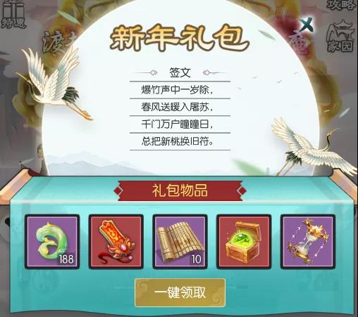大年初一至大年初七,任意时刻上线,即可通过主界面新年2022图标,直接领取新年在线礼,每位道友只能领取一次。没有任何门槛需求,点击就送188仙玉,祝福大家新年“要发发”。