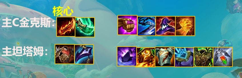 剩余的装备根据情况给即可,肉装给猪妹输出装给烬功能装给提莫即可。