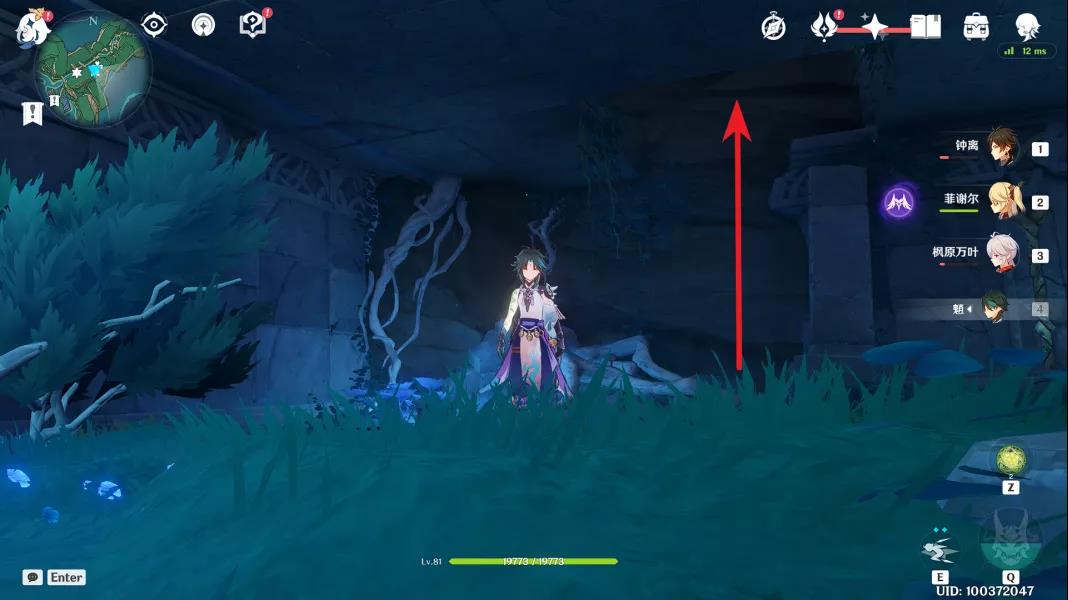 3、来到标记附近,往上爬的上面的密室,引导仙灵即可