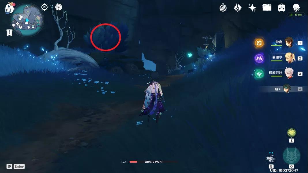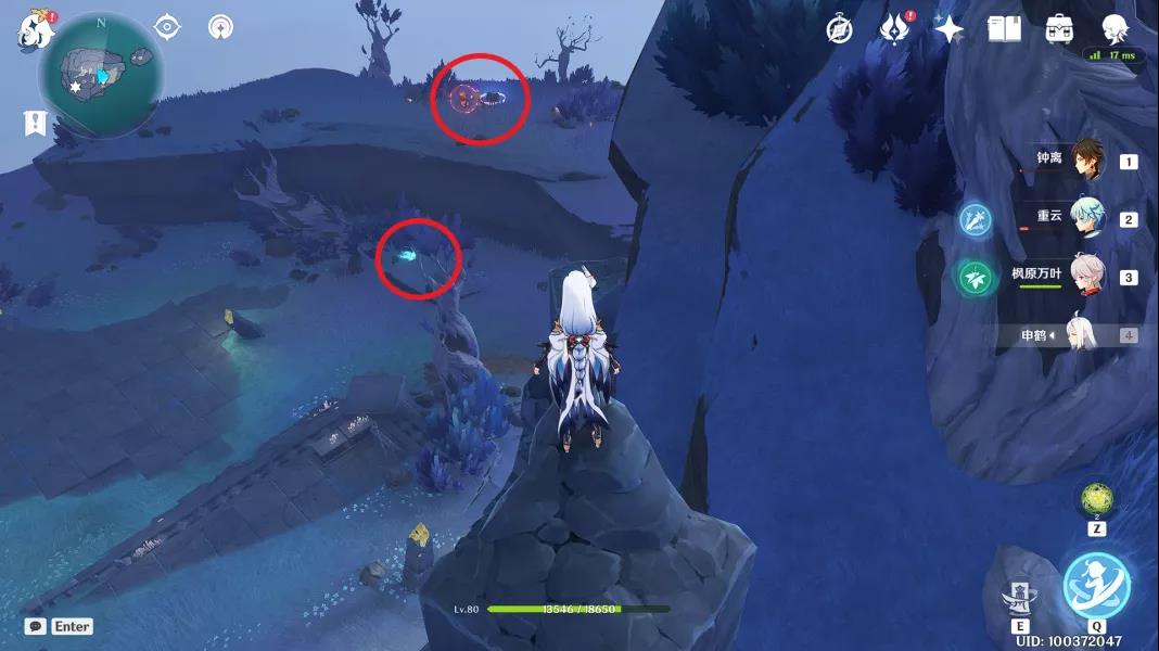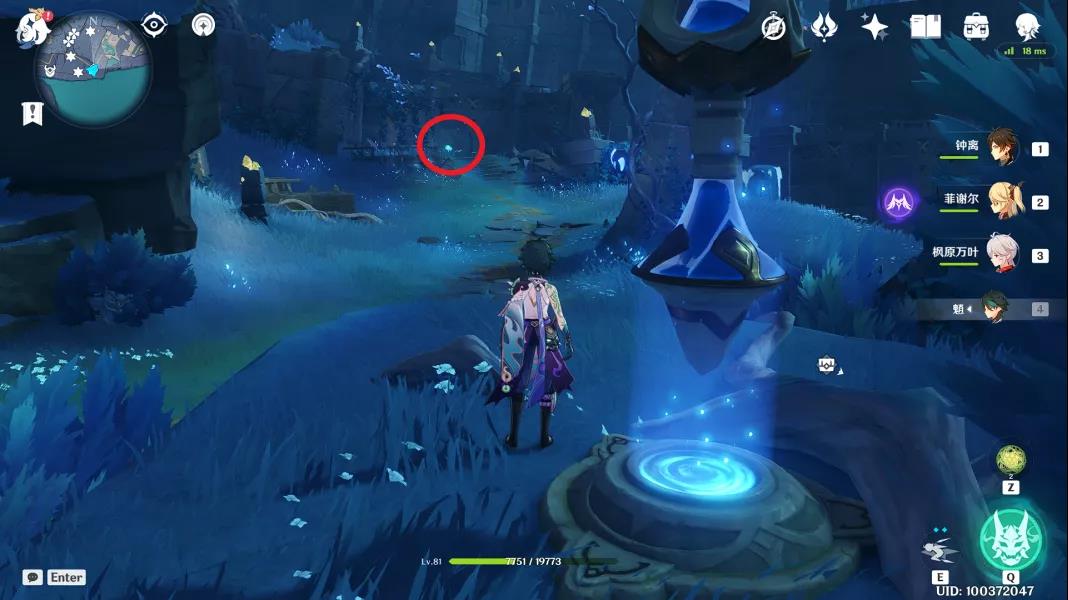 5、来到最南方的传送点,向西北看去,可以看见一个仙灵,引导即可