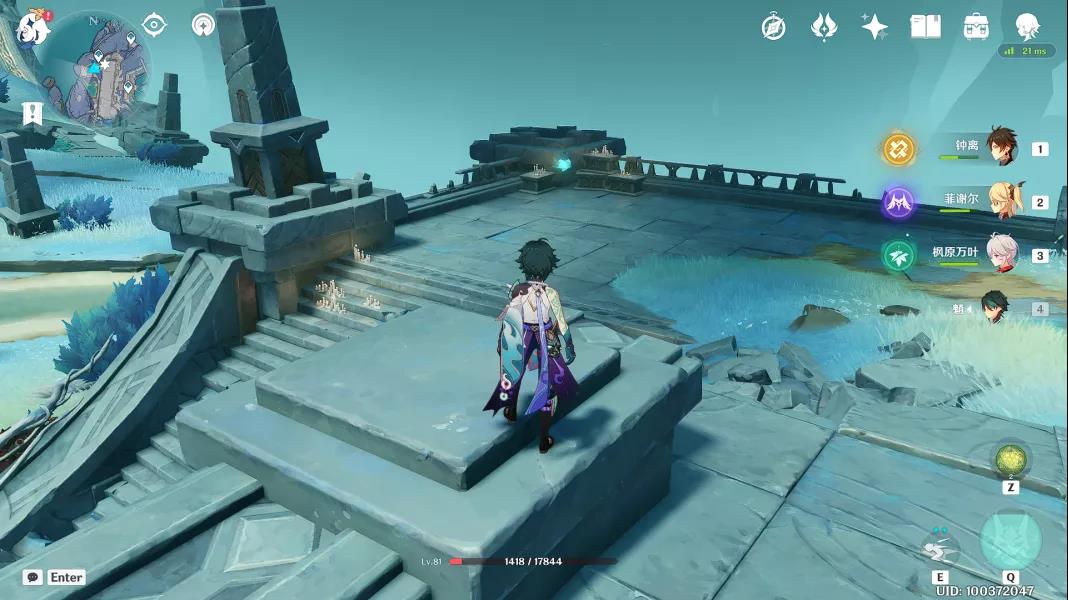 33、然后从32号仙灵座台的位置往遗迹里面走(上一张图的左边),进来以后在对面可以看见一个挑战,先不管