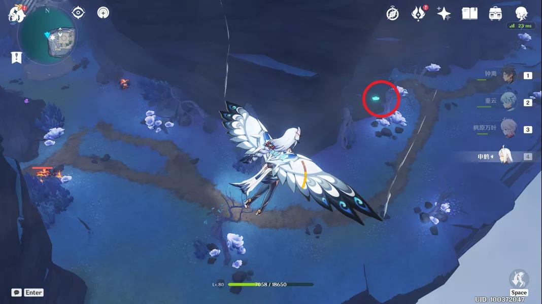 然后从悬崖飞下来,靠近标记位置的一颗树上可以看见一个仙灵