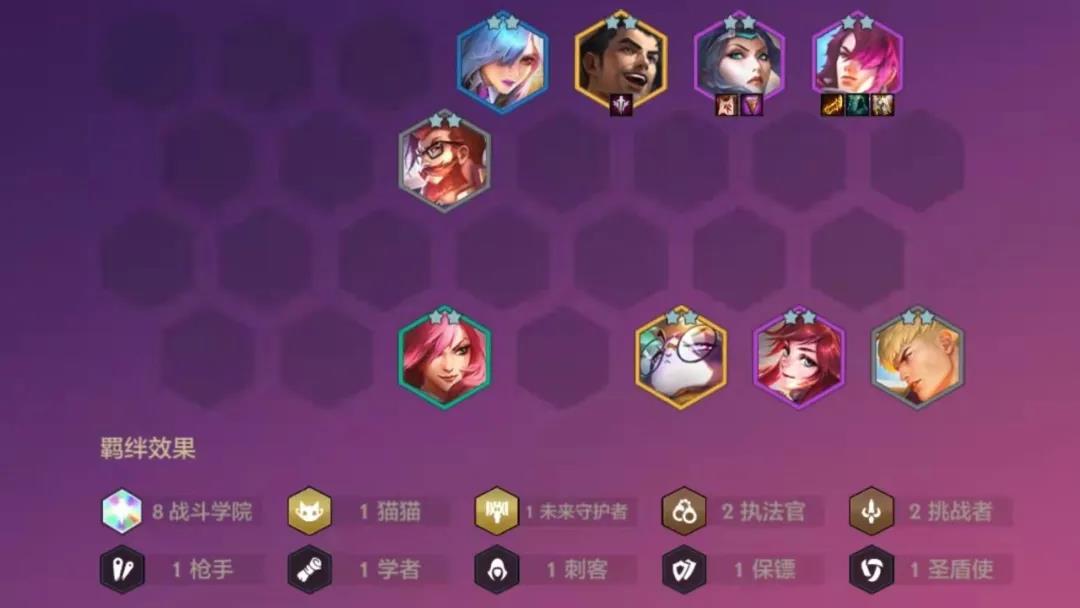 有铲子或直接有专职必上八学,收益虽高,注意不要八级强搜猫崩了经济。永恩升二早稳血靠前就攒主金币快速上九。后期阵容上限极高,转职不必非留给某个五费,只要是范围伤害都可以,只要是二星五费就能优先选择。