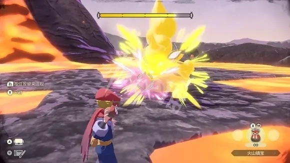 如果它在蓄力火焰攻击的时候,其实这个时候我们可以在它面前疯狂投掷镇宝,因为这个时候并不会攻击我们,我们可以在短时间内把它的火球攻击给灭掉。