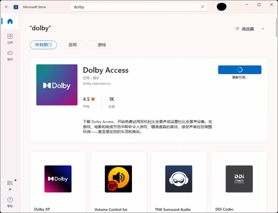 Dolby Access下载完是有7天试用期的,用完可以再考虑购入软件。打开Dolby Access在设置页面按照下图设置就可以了,记得关掉环绕声虚拟器和音量调节器。