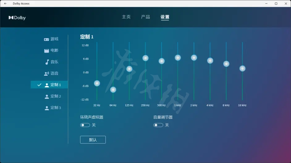 这个EQ设置可以用一些音频插件来实现,我偷懒就下了Microsoft Store的Dolby Access,也可以用DTS之类的,看个人选择。