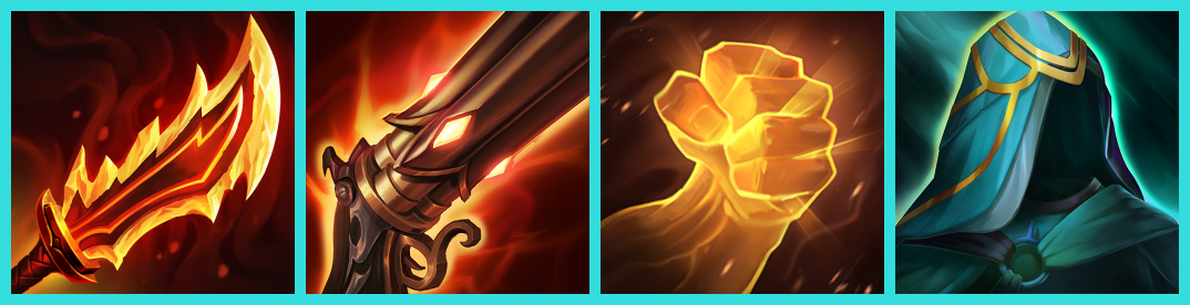 剑魔:石像鬼板甲、狂徒铠甲、救赎、荆棘背心、离子火花、巨龙之爪