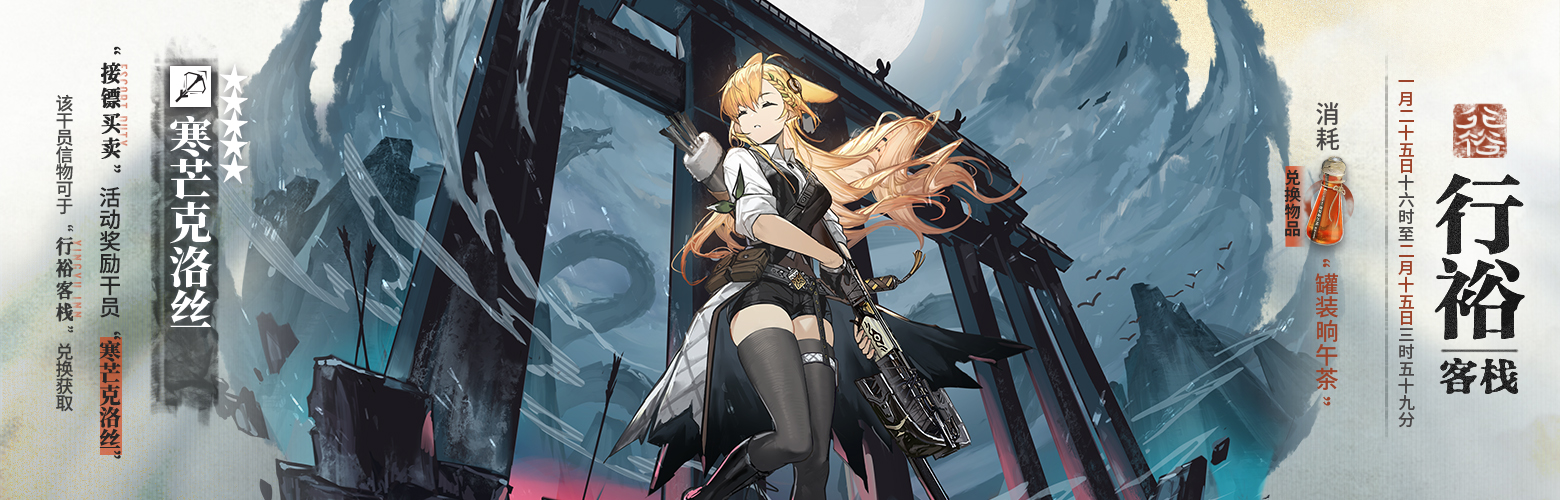 主要奖励:活动干员【★★★★★:寒芒克洛丝】、【山城茶馆】家具(部分)、罐装晌午茶