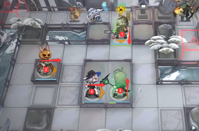 开局部署:泡普卡(向下)→ 克洛丝(向右) → 嘉维尔(向上) → 梓兰(向右)