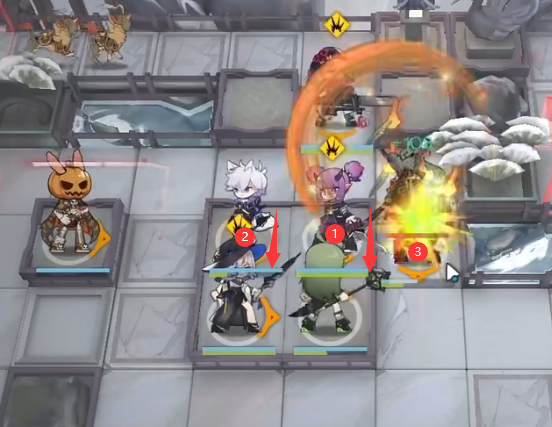 开局部署:泡普卡(向下)→ 克洛丝(向右) → 嘉维尔(向上) → 梓兰(向右)