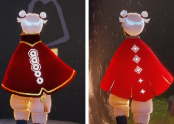 这个斗篷和其他斗篷稍有些不同,是镶着金边的,胸前还有一个铜钱标志,而且是中式立领,很有春节的氛围。