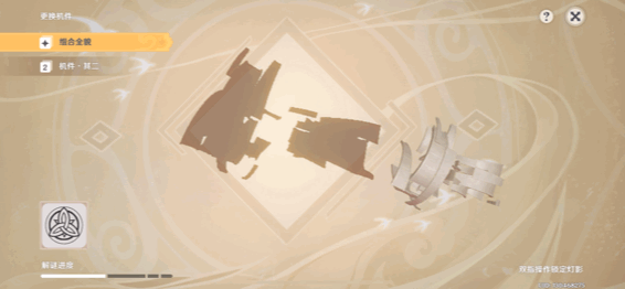 先把整体向左移一点,把图案移到中间,再把机件·其二从上往下翻过来一点,形成图案,再从下往上转上去对齐即可。