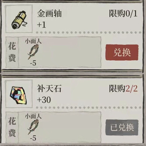 3、其他像补天石(小面人*5)、金画轴(小面人*5)