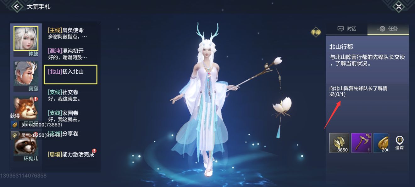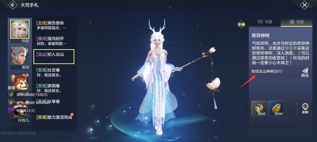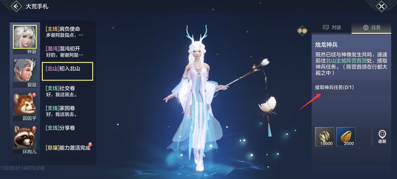 旅者进入游戏后,点开【任务列表】或【手札】,找到任务【初入北山】,与钟鼓对话便可开启神兵任务。