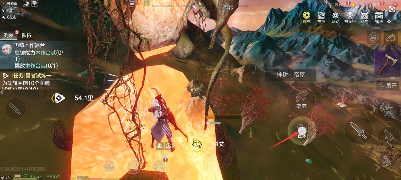 3.接着去寻找北山【神树】,将【华霆斧】放到快捷栏中,对神树点击【伐木】按钮。