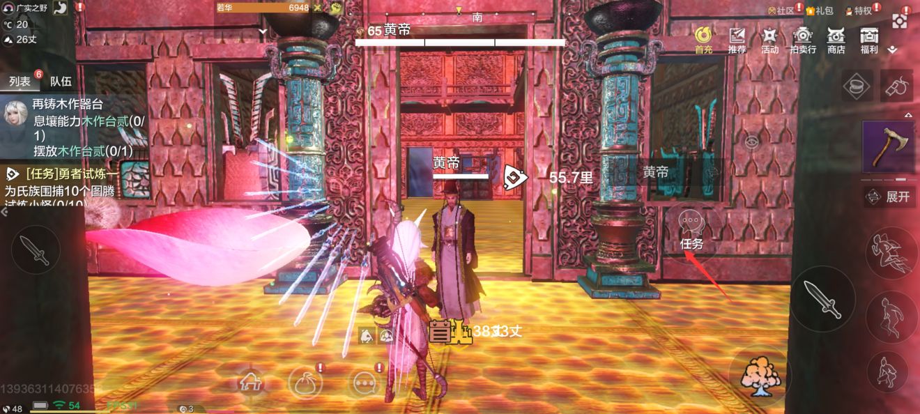注意:并非是神兵所在处,一定要站在任务指引所在位置才会出现继续任务的按钮。到达指定位置后若看不到,可调整视角对着【烛龙】的头即可看到【任务】接取按钮。(离开前别忘了激活章尾山天枢,以便再次回来)。