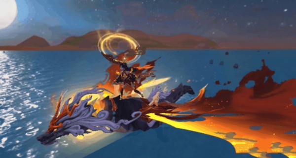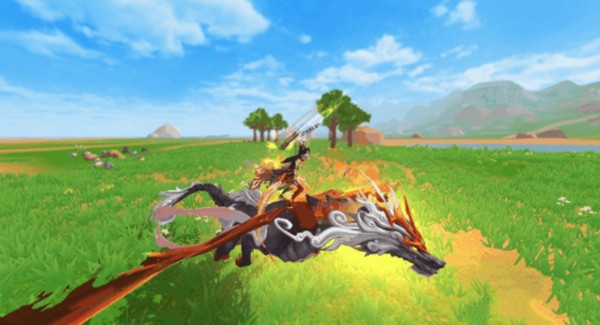 飞行时仿佛奔腾在云雾之中,应龙是三栖坐骑,飞行速度与负重也是有增加的哟。