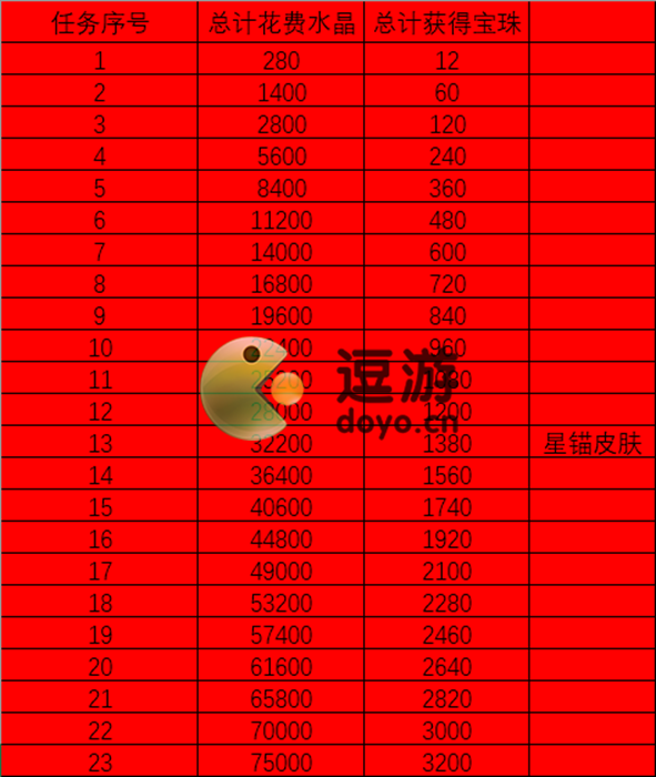 ①累计消耗水晶在0-28000范围内,每消耗价值2800水晶的补给卡能够获得120「探骊宝珠」