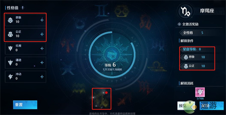 5.最后给大家一个小技巧,解锁星座一定要挑选你性格值最高的那些星座,这样既可以快速解锁星座,同时还能节省更多的加点材料,从而对星座进行加点,随后提升个人属性。