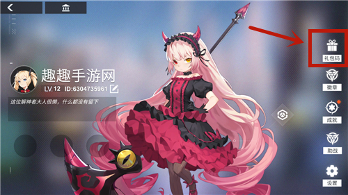 2、然后点击右边的礼包码选项,就会弹出一个礼包码的窗口界面;