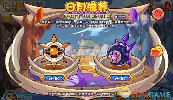 2、点击即可进入活动界面。我们需要先选择能量开启大地滋养,积累滋养进度可解锁兑换宠物或进化资格。需要注意的是:每天仅可选择1种能量开启大地滋养,选择后当天无法更改。