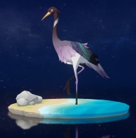 高贵优雅的鸟类,生着宽阔的双翼与修长的腿长着堇色的美丽羽毛,喜欢沉静地漫步在溪流或稻田之中。在稻妻的古歌中称之为里梅鸟丁,曾经有着非常广泛的分布, 但近来似乎越来越少见了。