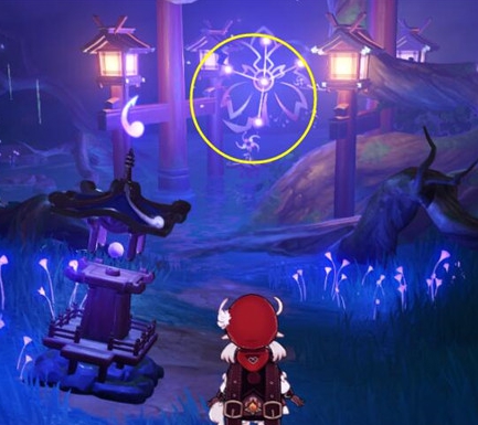 这时候出现封印图案,如图中圈圈位置,我们所在的灯柱为最下方的点位