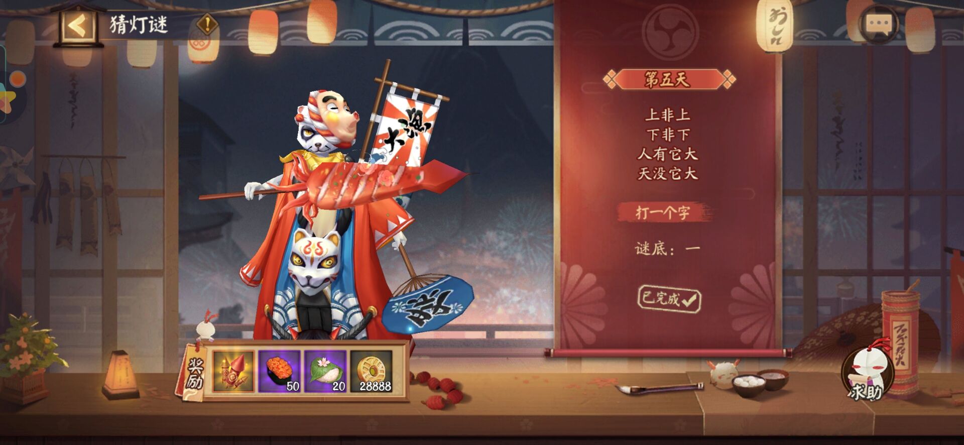 《阴阳师》上非上下非下人有它大天没它大打一个字 阴阳师灯谜答案2.13