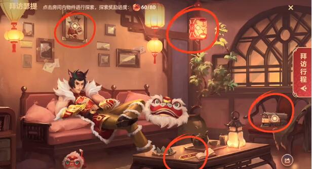 3、进入赵信的房间后,玩家可以点击屏幕右侧的【拜访行程】,在这里玩家可以查看系统需要玩家完成的任务;