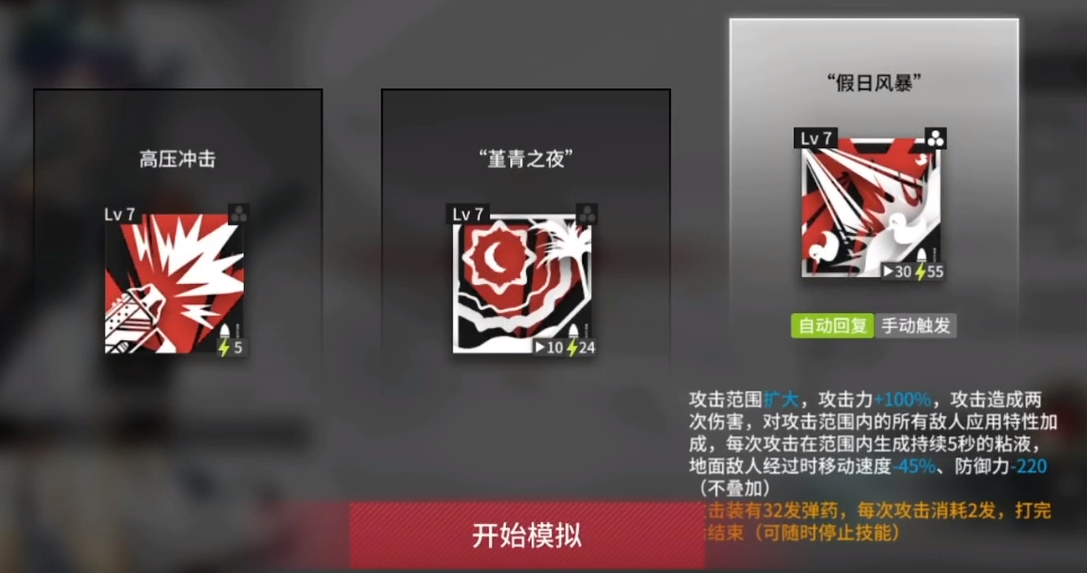攻击装有32发弹药,每次攻击消耗2发,打完后结束(可随时停止技能)