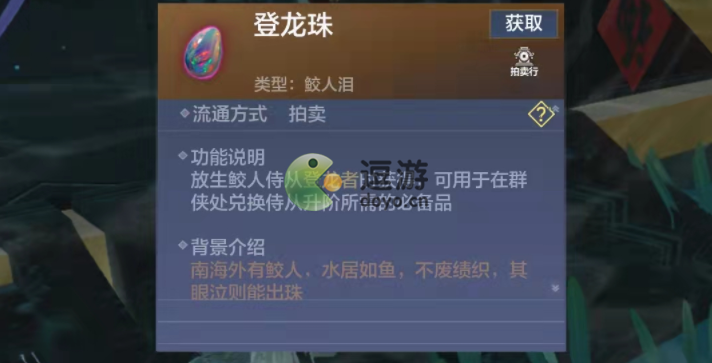 1、登龙珠可以通过放生侍从【登龙者】获取,也就是放生85资质人鱼,侍从界面放生。可以进行拍卖