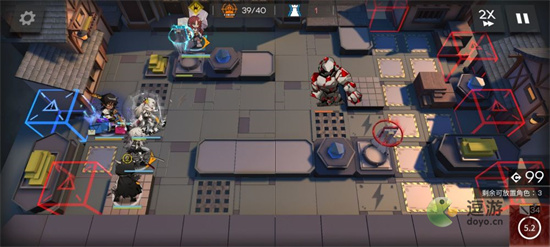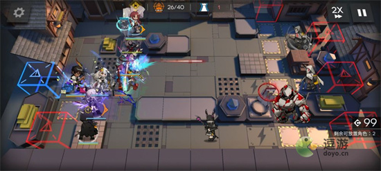 1.开局上方部署桃金娘,然后积极的爆费,之后门口部署棘刺冲右侧攻击,在留声机下方部署煌冲下攻击,下路高台补充闪灵或者苏苏洛也可以,冲上奶人,把煌也能覆盖上。