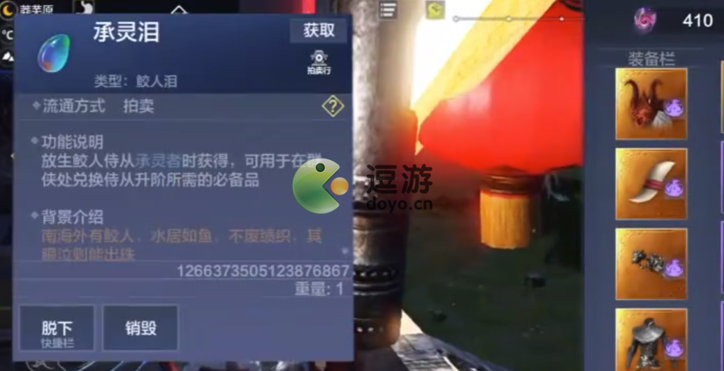 2、如图所示,放生鲛人侍从承灵者时获得,可以用于在龙哥或者群侠处,兑换侍从升阶所需的必备品